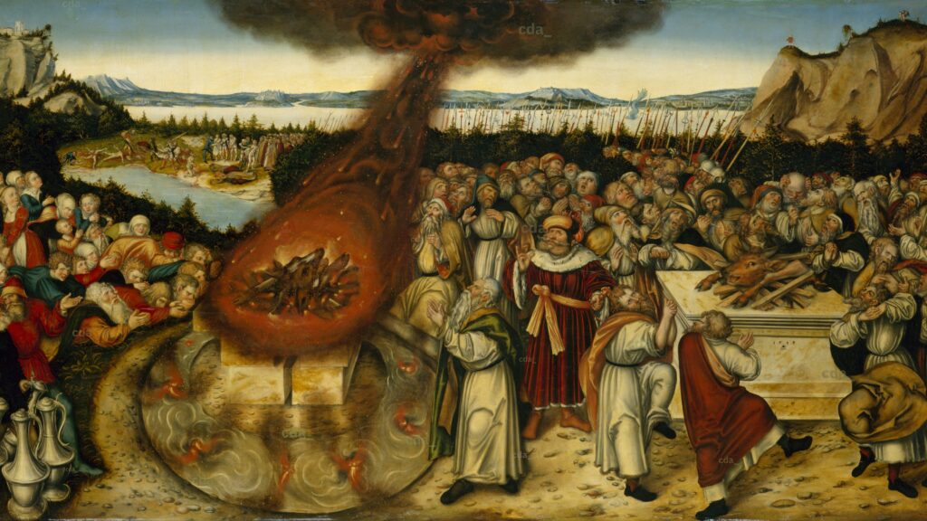 Elijah and Baal’s Priests, by Lucas Cranach the Younger (1545)